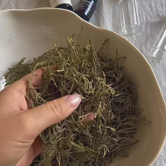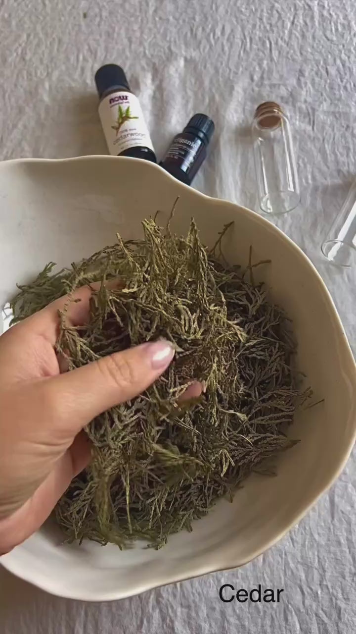 The aroma combines the warmth of woodsy notes and the softness of gentle herbs. Cedar brings a sense of stability and grounding, frankincense encourages clarity and calm, black copal is traditionally used for energetic protection, and white sage helps clear stagnant energy. A touch of rosemary refreshes the mind, while rose petals add a subtle, uplifting sweetness.